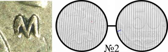 Александр, точно помню, что какой-то из вариантов "гравировки" встречается часто и не должен быть одноштемпельным, кажется похожий на варианты №1-3. У тебя получилось точно определять что "вот эта монета с гравировкой, а эта - без гравировки"?