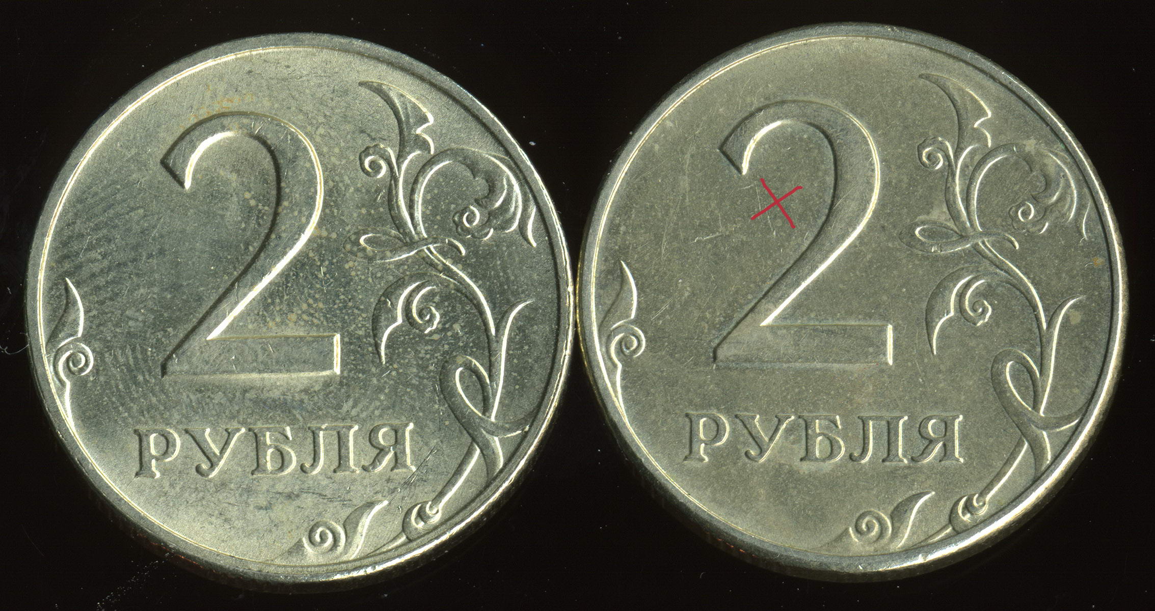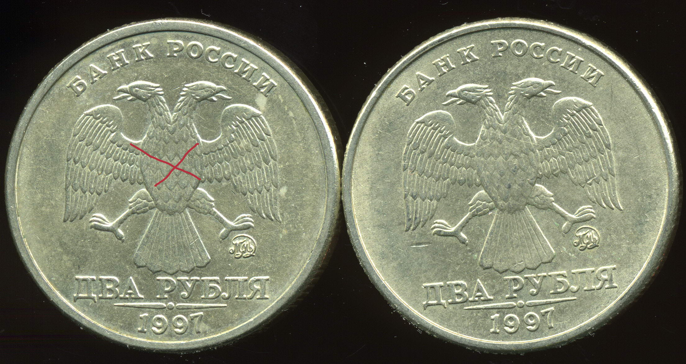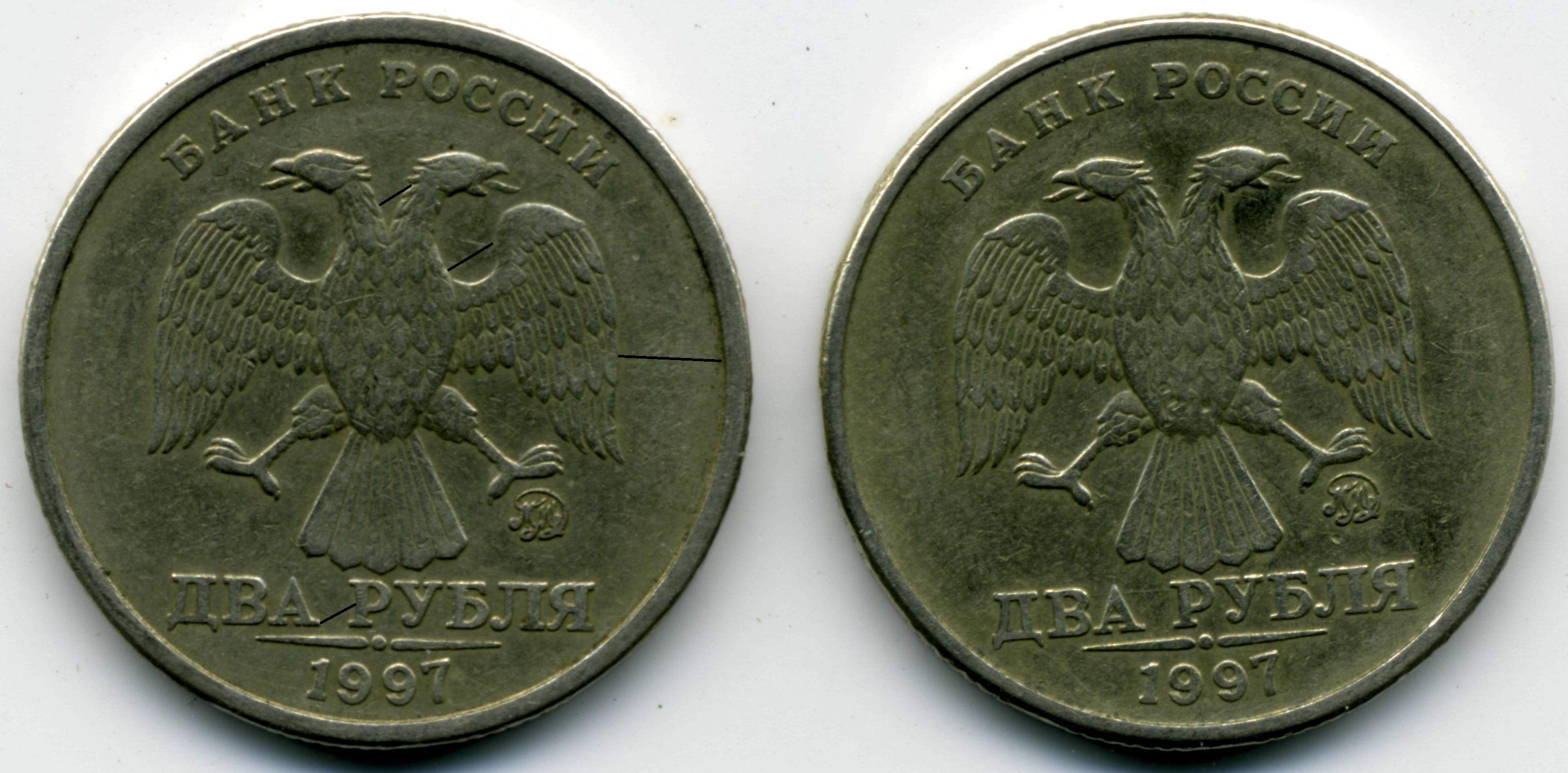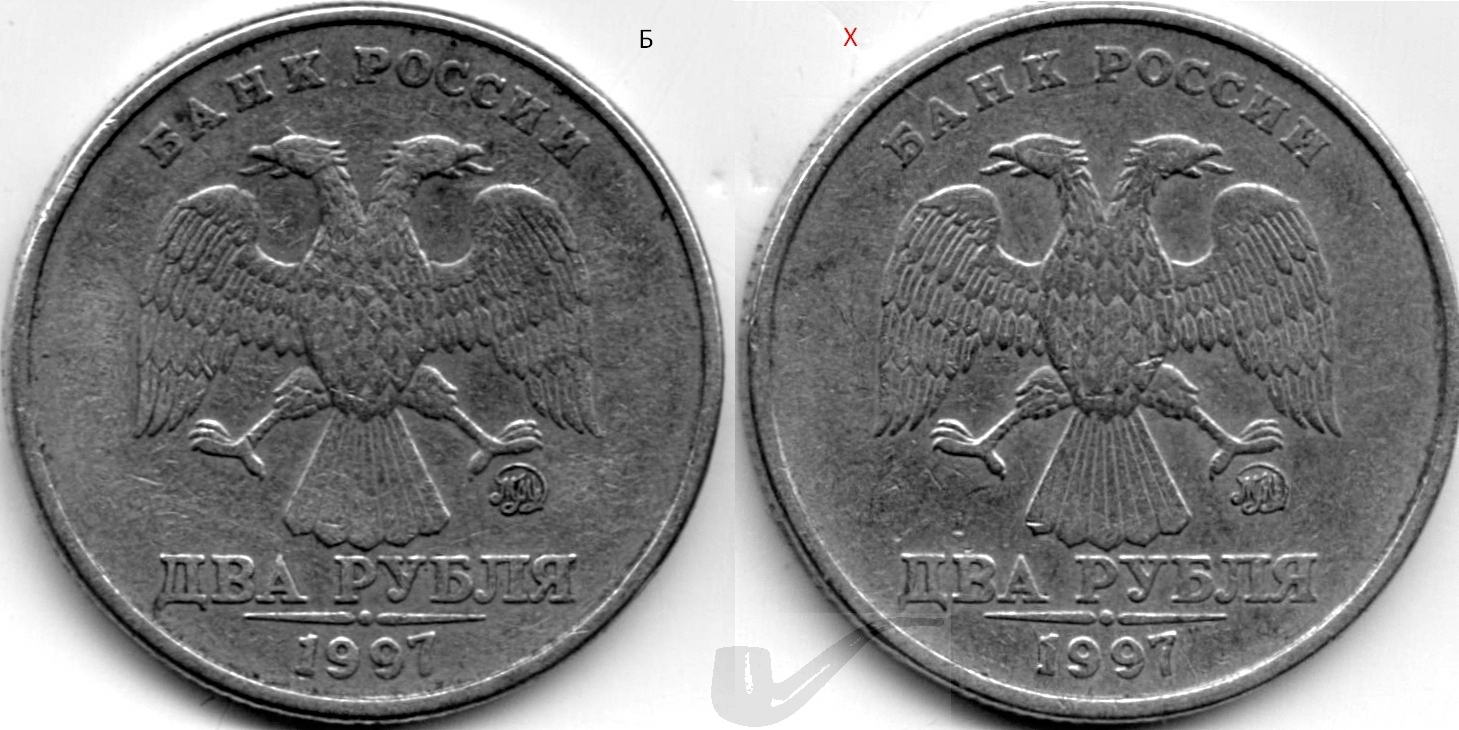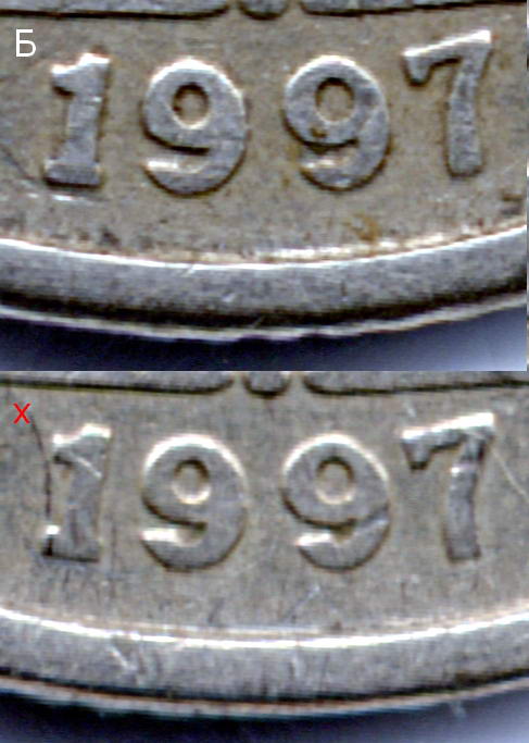 Высыпал вчера все отложенные 2р.1997М, откинул с реверсом 1.2 (кстати, их у нас в обороте много всех сочетаний), потом с аверсом Б, показанный мной выше слева, вызвал сомнения, промерил измерителем, положил в А1.... Значит ошибся, прошу извинить, вот он справа, помечен красным Х.