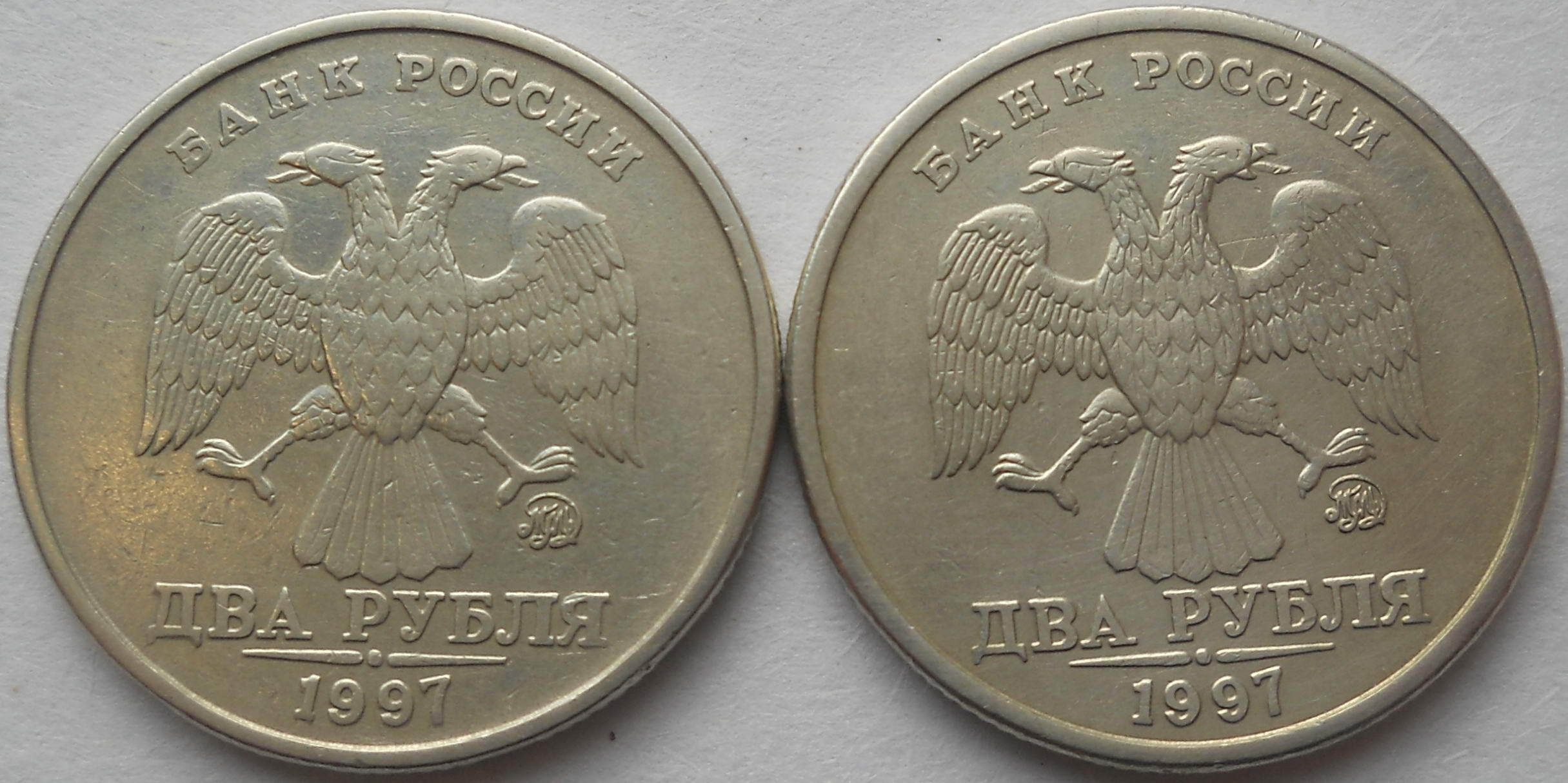 Начал разбиратся в двушках 1997 ммд. С аверсами вроде всё понятно. Не могу отличить реверсы 1.2 от 1.3. Подскажите пожалуйста.
