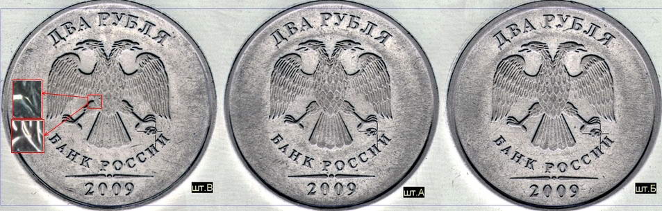 Просто я в живую шт.В в руках не держал (да и двухрублевок вообще мало вижу), а из описания в каталоге следует только разница в размере канта (фактически, диаметра рабочего штемпеля). Хотелось бы понять, на основании каких признаков принимается решение, что перед нами не шт.Б. Есть какое-то критическое значение разницы в размерах, которое нельзя списать на технические вариации одного штемпеля или же есть еще какие-то отличительные особенности? Должны же быть какие-то признаки, по которым промежуточный размер поля опознается как увеличенный Б, а не уменьшенный В?
