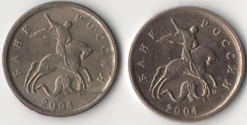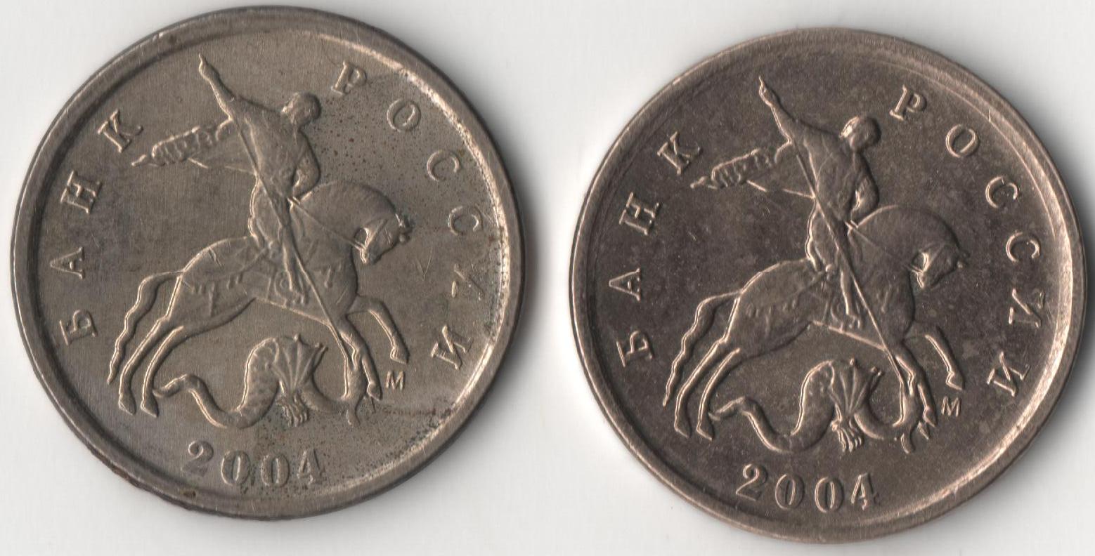 Реверс левой отчеканен штемпелем образца 1997, разновидность правой (с более широким кантом) как раз с 2004 и появилась.