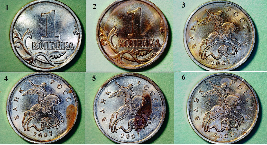 Забыл указать - под №1 просто чистая монетка, для сравнения.