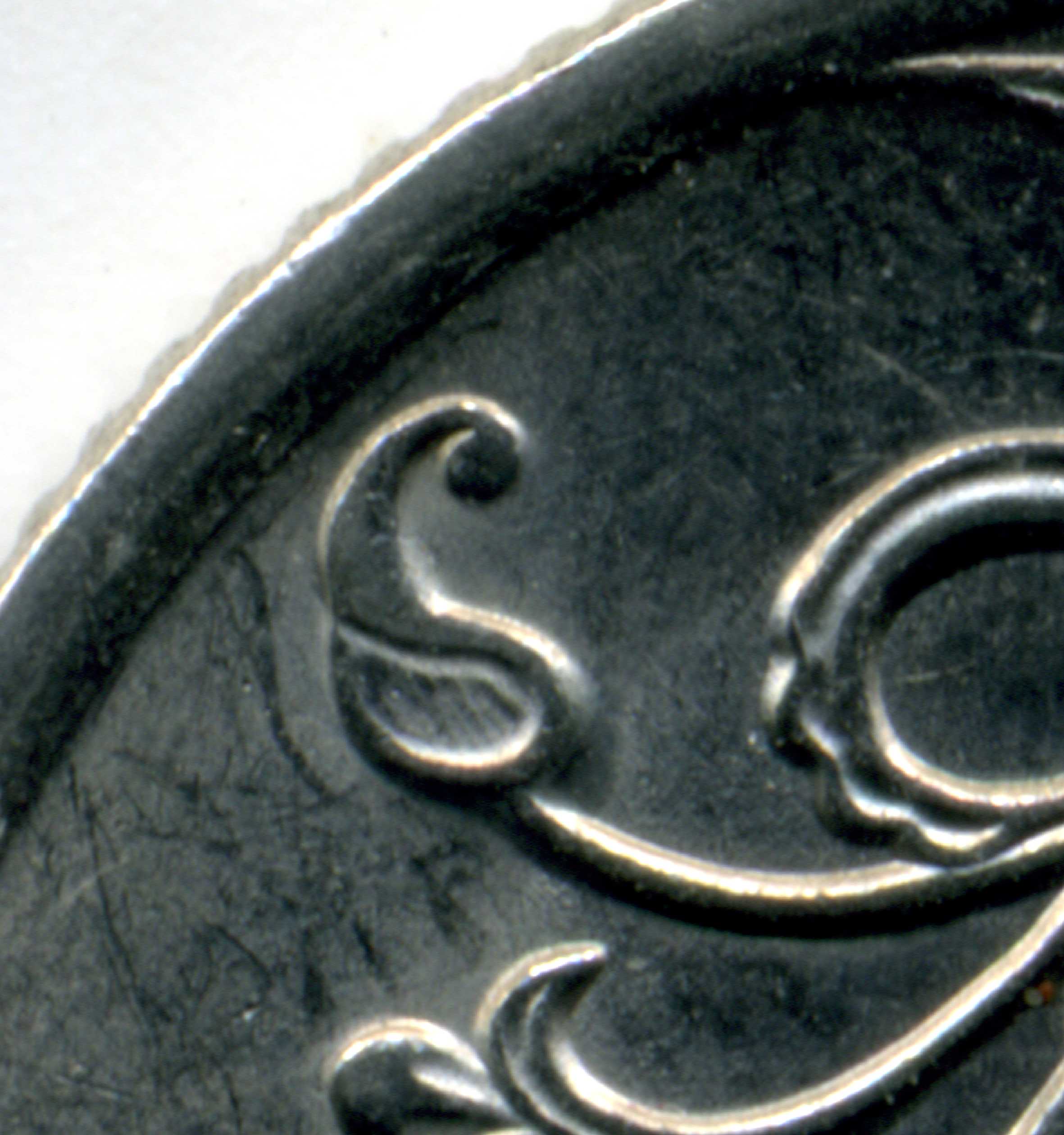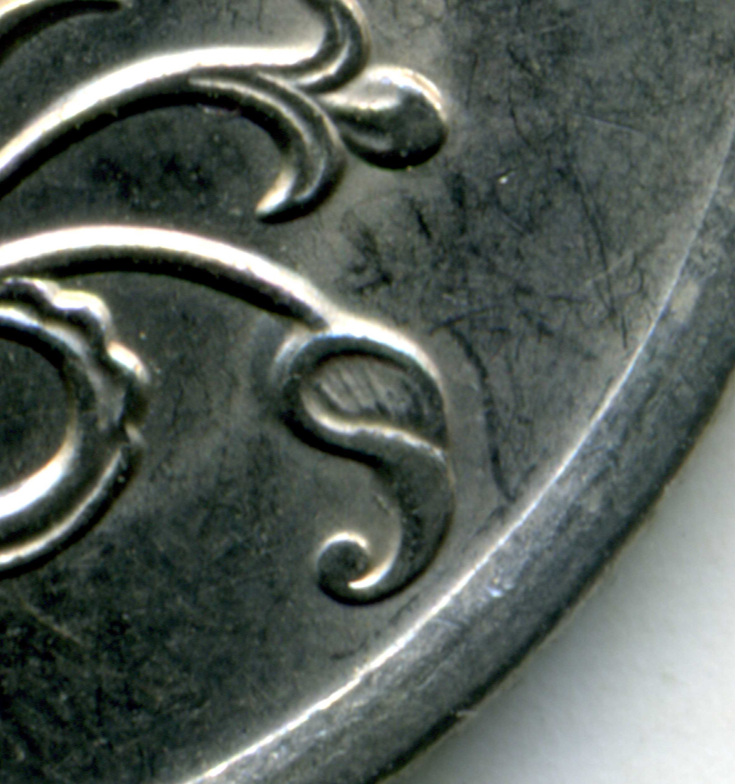 4. Ещё примечательная монета. Это - не узор, а наплыв/(вмятина?). К ней же -