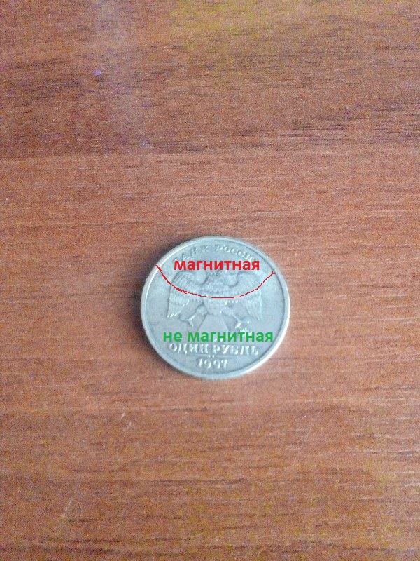 Ко мне в руки попала монетка 1 рубль 1997 года ММД Магнитная