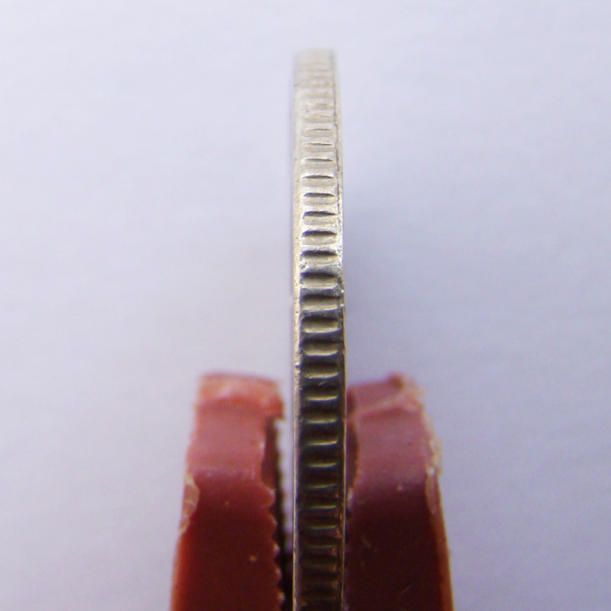 На фото гурта видно "выползание" металла на гурт, а на совместном фото гуртов видится, что эта монета немного тоньше. Подождем замера, но пока склоняюсь к версии, озвученной Виктором: