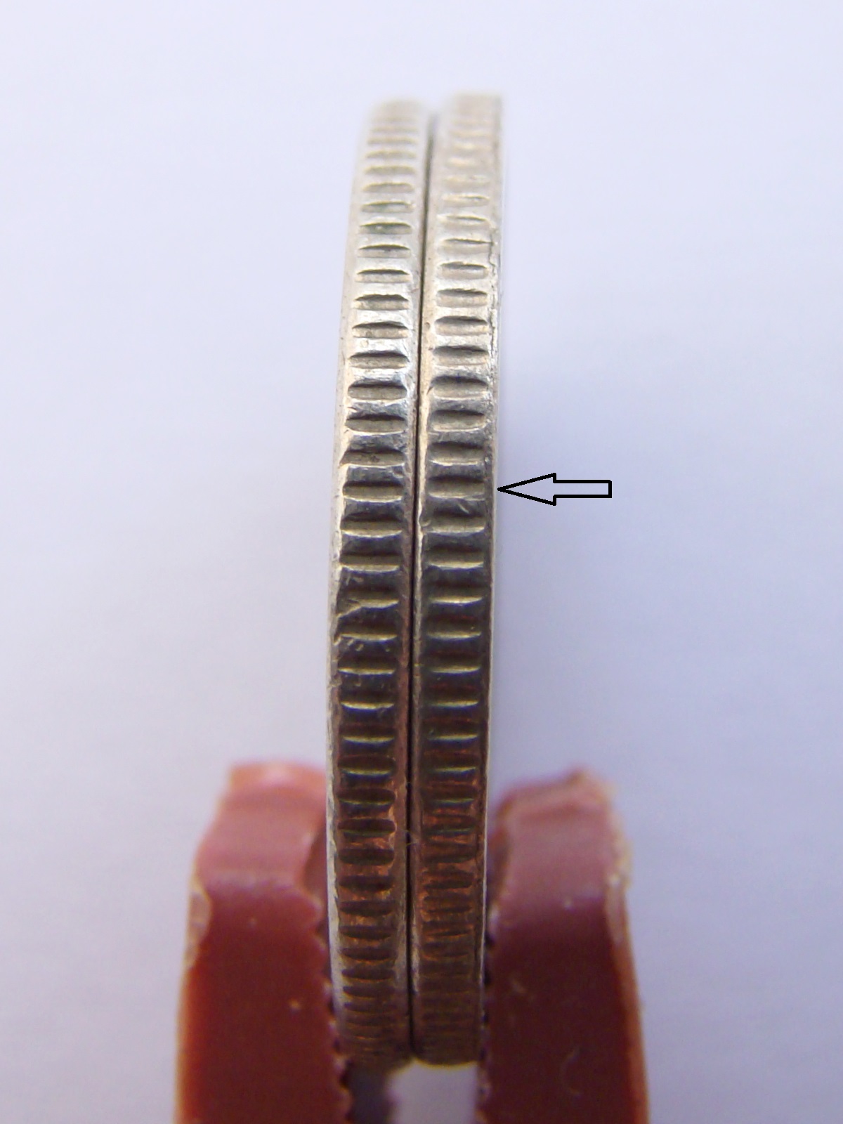 не представляю как можно монету так "раскатать", чтоб кант расширился (причем равномерно), а остальные элементы рельефа остались нетронутыми...