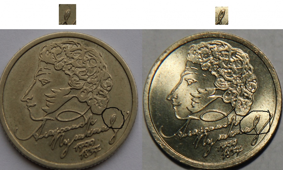 Не понятен интерес к этим выкрошкам. Видимо кто-то когда-то пустил слух, и пошло-поехало. Наверное это отчасти из-за того, что на них разновидностей не известно, поэтому всякие отклонения хочется считать разновидностями. Но на монетах полно таких выкрошек.