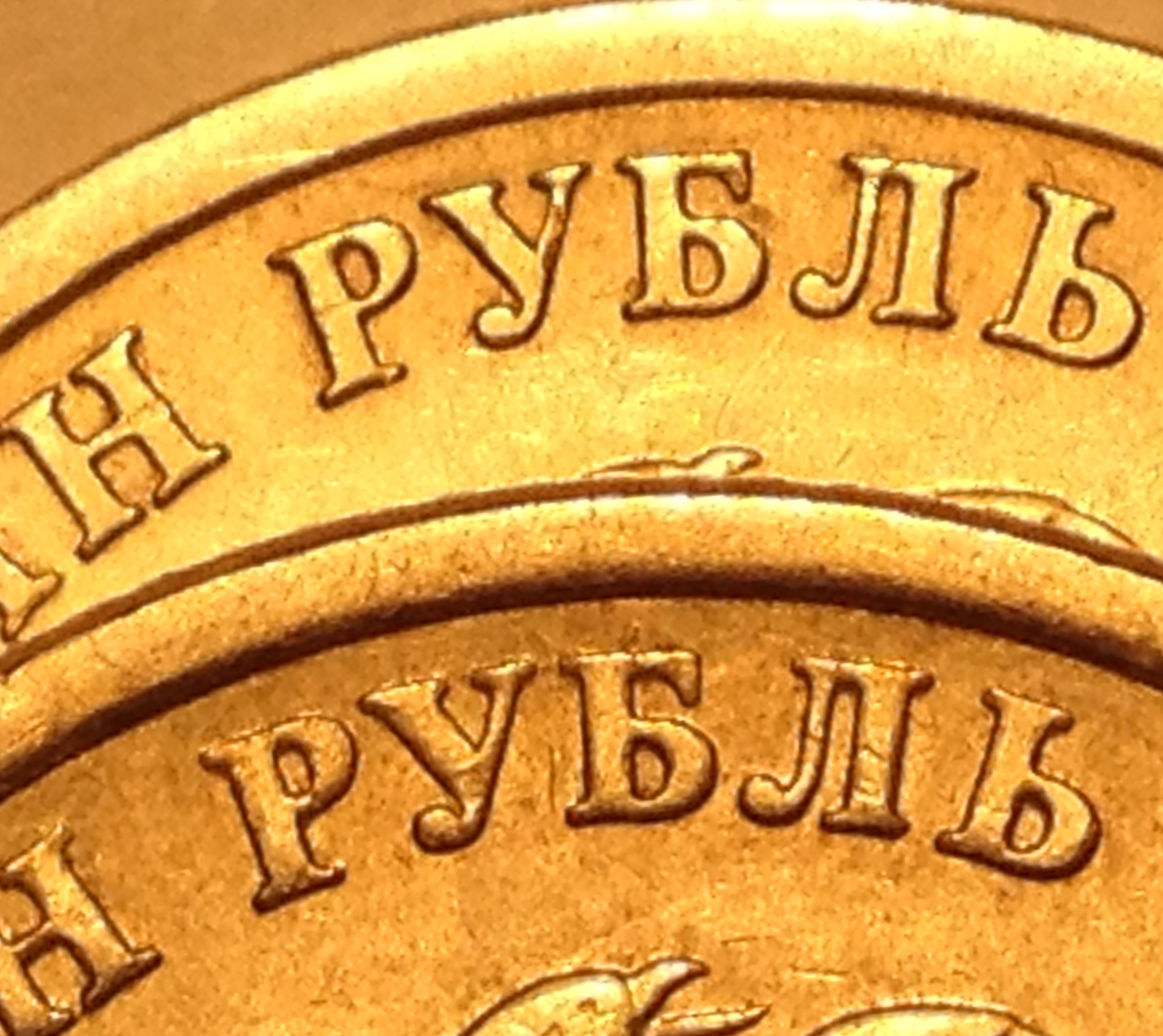 Проверял группу рублёвых монет 1 рубль спб. Сканирую сразу всю группу после чего в графическом редакторе накладываю полупрозрачное изображения штемпеля А такого же размера как и монета, на монеты с овальной точкой. На одной из монет не смог полностью совместить изображение штемпеля А, проверил штемпель Б, удалось полностью совместить. Прошу мнений по поводу монеты.
