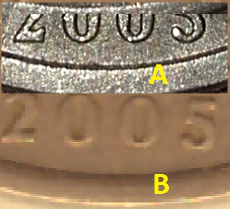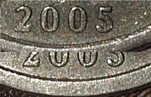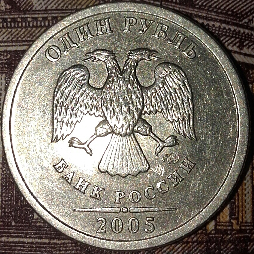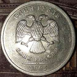 У всех НЕ простых вариантов 1 руб.2005 СПМД надписи отдалены от канта
