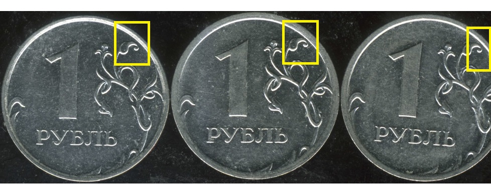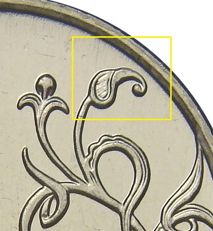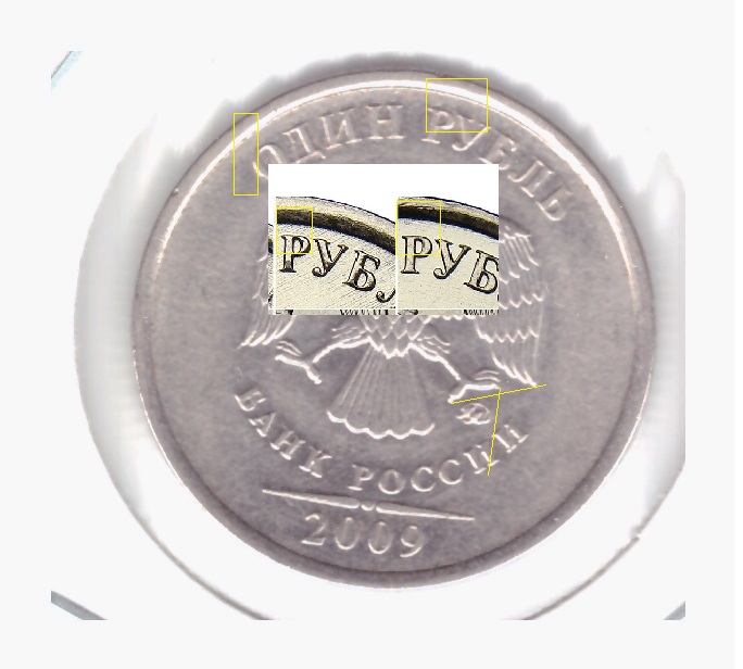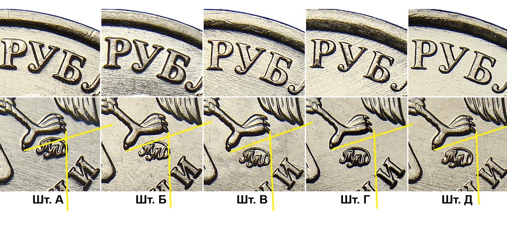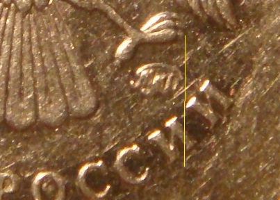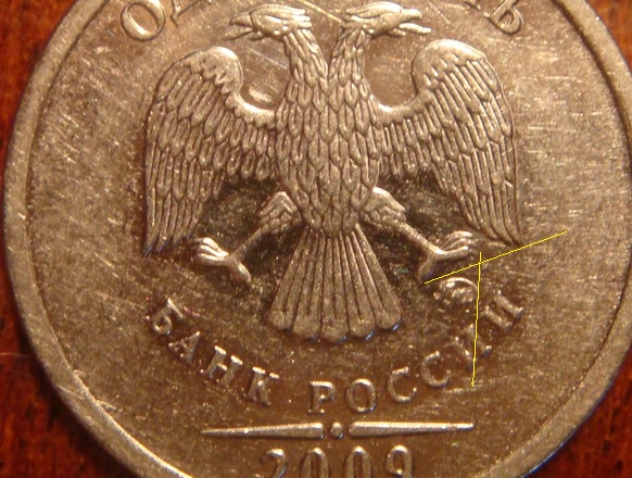 Расстояние от легенды до канта видно отчетливо, так что проведите от правого когтя линию по краю монограммы и разновидность определится без проблем.