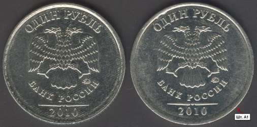 Размер элементов изображения аверса на двух монетах одинаковый--обе А1