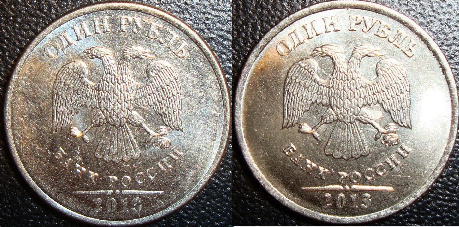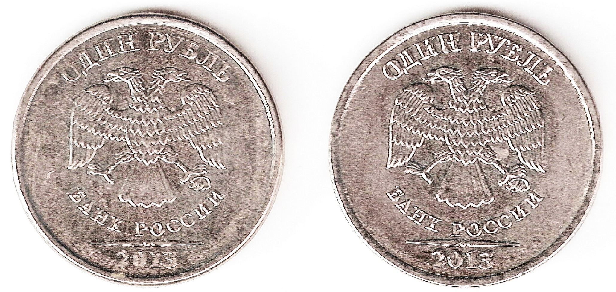 Вот попалась монетка на которой знак мондвора расположен вплотную к лапе орла. Это связано с тем что знак толще и поэтому создается такая видимость ? Проверила размеры изображения линейкой в фотошопе, они одинаковые, существенных отличий между монетами нет, разве, что языки на правой монете больше загнуты