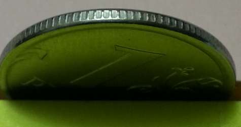Не знаю сообщали ли уже, я не видел пока, но вроде бы нашел символ рубля с комбинированным гуртом ?. Надеюсь верно определил теперь, есть участок с четкими узкими просечками в виде линий и широких просечек. Эти участки не фотографировал.