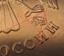 есть такое дело - некоторые монеты со шт "В" имеют более жирный рисунок, но расположение знака то же.