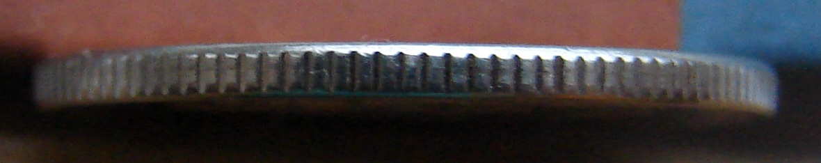 Гурт как раз с узкими просечками,т.е 2-го типа,но вот в отличие от монет 2005-2007 годов где рифы были чёткие трапециевидные,у этой, как впрочем и у большинства, если не у всех монет последних лет, рифы присплющены,такое впечатление что гуртильное кольцо сильно изношено.Монета точно не III типа-рифы,как и просечки примерно одинаковы по всему периметру.
