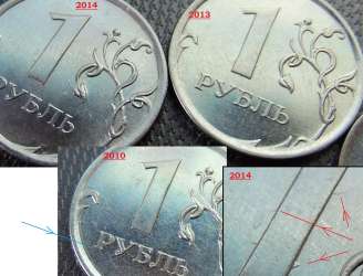 добавил картинку где видно на всех монетах. Красными стрелками указал на одинаковые выступы, которые есть на всех монетах на 2014 их видно лучше всего. Голубой стрелкой указал второй кант, который есть только на монете 2010г. Вчера его не заметил.