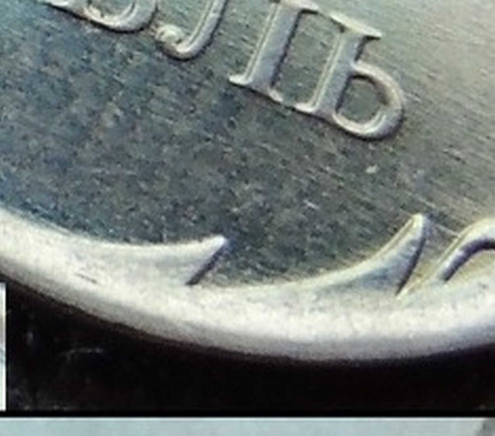 Добрый день .На этих снимках ( восьмой пост ) - фрагменты ваших монет ( верхняя - с вашего рубля 13 года , нижняя - с правой монеты что были показаны Вами в начале ) Посмотрите по каталогу - это элементы разных штемпелей ( на 13 годе -3.42 реверс , а на второй ( год не знаю )-3.3 реверс ) .. Это говорит о том , что ваше предположение в начале темы не верно .