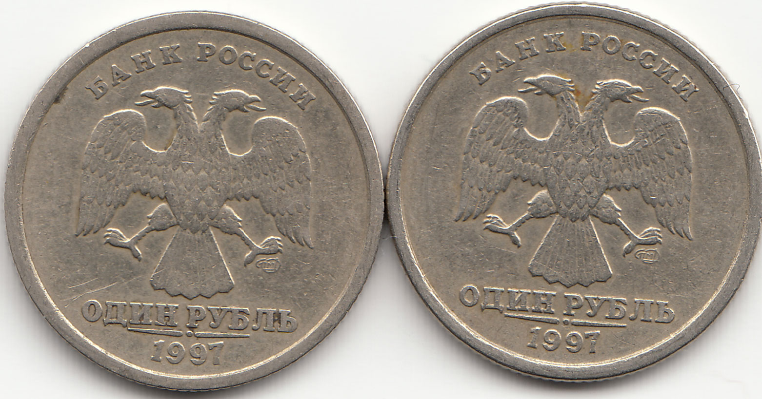 ...Здравствуйте, сегодня обратил внимание на монетку 97г 1 руб сп (на фото слева) на вид кант и буквы "один рубль" шире ( видно по отверстиям в буквах). Что вы скажите??? монета справа для примера