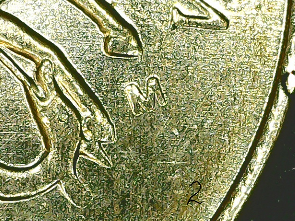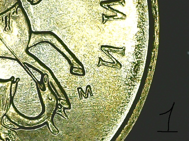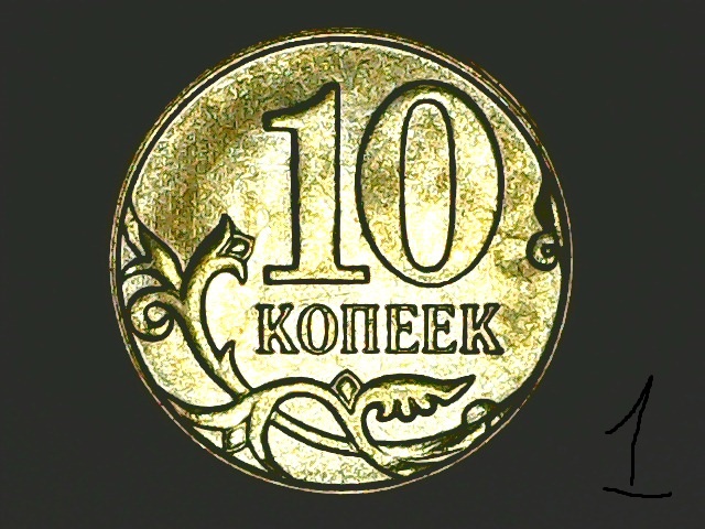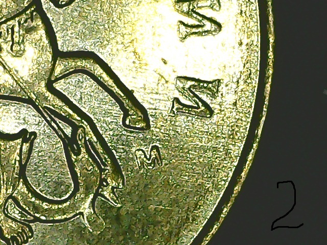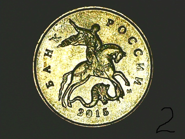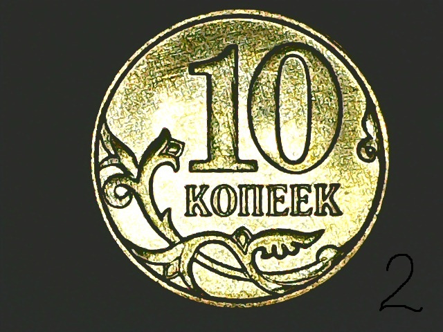 Поробуйте по старинке, линиями определить. На нижней монете буква И тоже расплющилась).