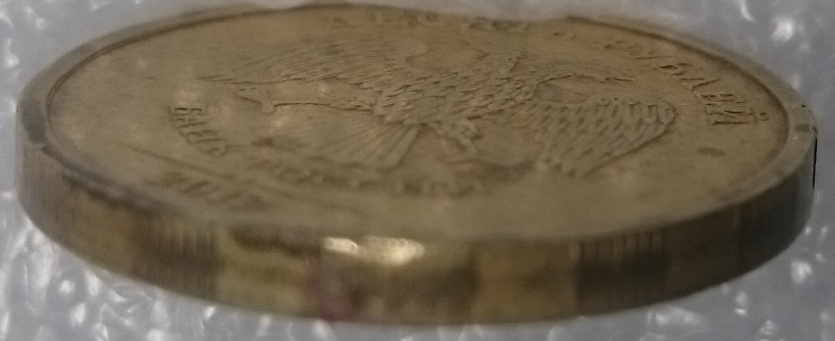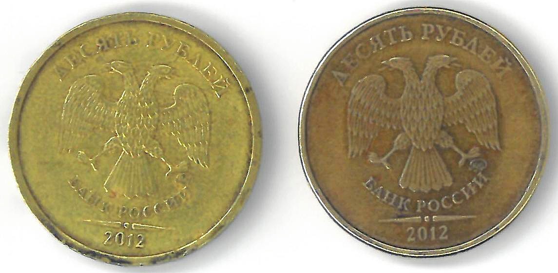 Игорь Владимирович, начнём с того, что нужно сделать нормальный скан за один проход сканера - положив монеты по центру стекла, расположив их так, чтобы, каретка сканера захватывала сразу две монеты, чтобы наверняка убедиться (увидев одинаковый диаметр обеих монет) в масштабе рельефного орнамента. На Ваших двух верхних сканах аверсов/реверсов диаметр монет разный, поэтому фото которые ниже, наводят на мысль, что сравнения сделаны не очень корректно (хоть там и видим якобы уменьшенный размер изображения). Далее, в Вашем случае, нужно ещё сделать взвешивание, и замер толщины (если конечно он визуально разный с обычной монетой) исследуемой.