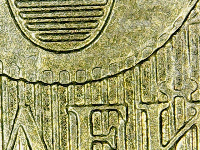 Попалась монетка с таким заездом линий на номинал и кант.брак? частый?