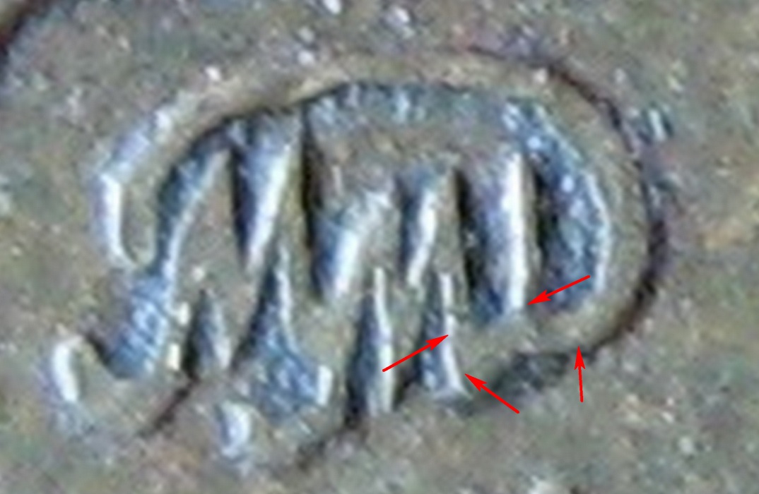 Здравствуйте, вчера из-за одной хорошо прочеканенной десятки 2013 сфотографировал две, хотел сравнить, но наткнулся на интересную особенность. У первой (назовем ее №1) вторая опора второй буквы М в ММД выпирает ниже, а следовательно, образует с буквой Д внизу угол острее, чем вторая. Ради интереса перешерстил все имеющиеся в наличии десятки 2013, их было немного, штук 5, все с углом острее. На одном форуме сие назвали пиксельной разновидностью и посоветовали не заморачиваться с этим