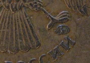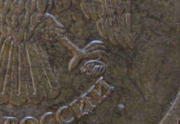 По первому аверсу: Все элементы штемпельного рисунка и легенды сильно утолщены, т.з. «зажат» между лапой и последней буквой «И» в слове «РОССИИ» - шт. "Б" по местным обозначениям.