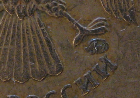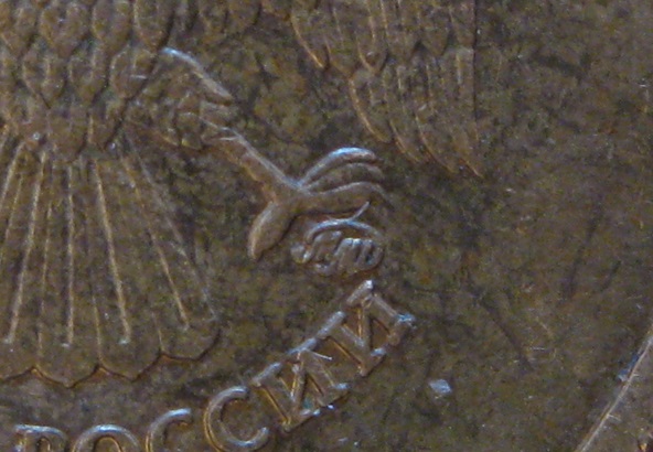 По второму: т.з «ММД» - равноудалён от правой лапы орла и последней буквы «И» в слове «РОССИИ» - шт. "А"