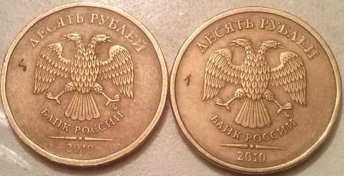 Замер размера изображения на десятирублевках лучше всего производить между центром глаза и центром точки между усами внизу аверса. Проще всего циркулем - измерителем, но можно и на сканах.
