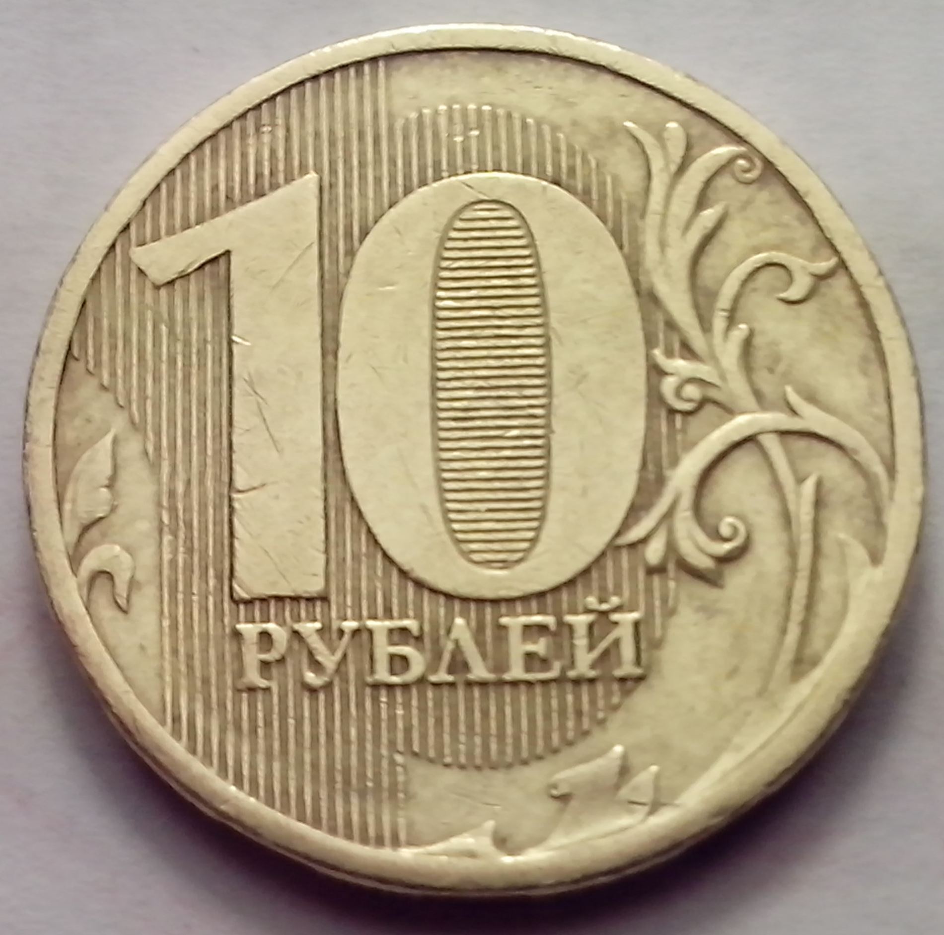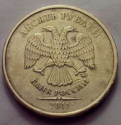 следы механического повреждения. Штемпель самый распространённый для 10 рублёвых монет 2011 года - 2.3 А.