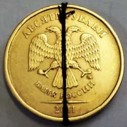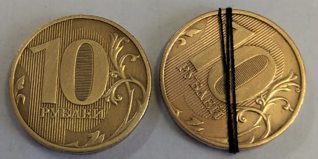 2. Поворот на 10 рублях 2011 ММД + непрочекан гурта + розоватый оттенок на монете (основа монеты стальная, магнитится)