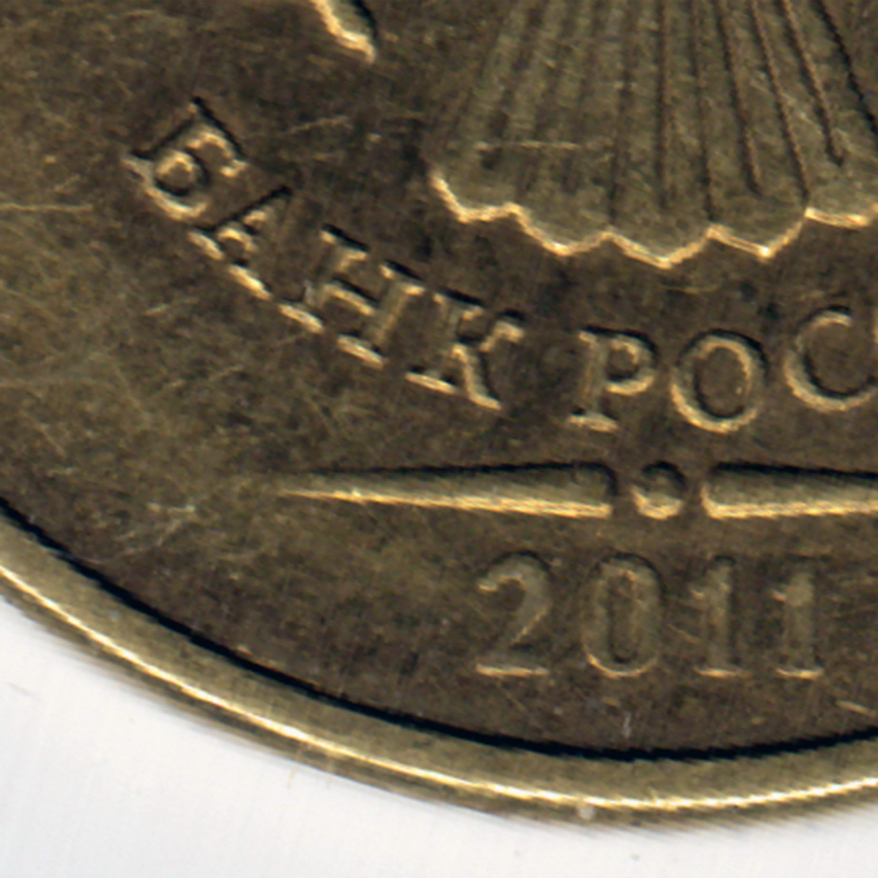 И, чтобы уже закрыть для себя тему десяток 2011 года, еще один вопрос. По совокупности признаков изначально определил данные монеты как шт.2.3А. Только вот смущают отличия, например основание буквы "Б" в слове "Банк", разная ширина букв "О" в слове "России", разное направление шлифовки. Ваше мнение?