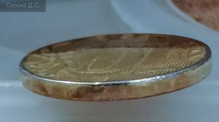 Доброго времени суток. Посмотрите на данный экземпляр,что с ним? Фальшивые , агресивная среда, брак? Возможна ли ее продажа и за сколько? Монета магнитная, вес 5.5гр (+/-.0.1).Сдали сдачу в сельском магазине,так же фольгой и чем то еще не обматывал и не делал с ней ни каких манипуляций для получения такого вида.