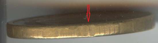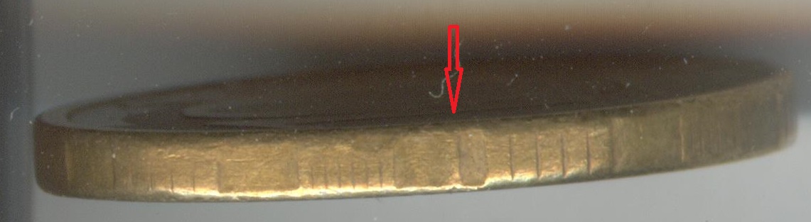 Здравствуйте!Случайно на глаза попалась полоса гурта,явно не рядовая.Подскажите,может ещё кому такая попадалась,и как она появилась?