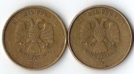 Доброго времени суток,скан 2-х монеток,аверсы отличаются размером изображения(измерял -Screen Calipers),да и поле правой монеты больше(кант уже),хотелось бы узнать Ваше мнение.