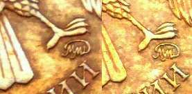 ЗНАК МОНЕТНОГО ДВОРА должен КООРДИНАТНО НАХОДИТЬСЯ В ДРУГОМ МЕСТЕ ОТНОСИТЕЛЬНО ВСЕГО РИСУНКА , А НЕ ОТДЕЛЬНЫХ ЕГО ЧАСТЕЙ МАКСИМАЛЬНО ПРИБЛИЖЁННЫХ К ЗНАКУ ,Ну и где тут кардинальные отличия?