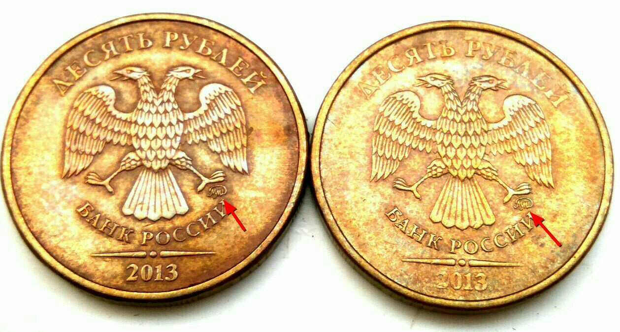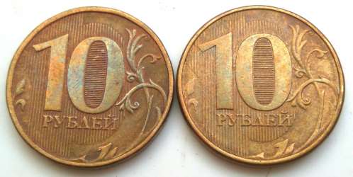 В 2010 году, монограмма монетного двора по разному располагается относительно других элементов изображения, это хорошо видно, если провести определенным образом линии. Посмотрите в других темах, найдёте. В данном случае просто разный рельеф изображения, как вам правильно написали из-за разного износа инструмента.