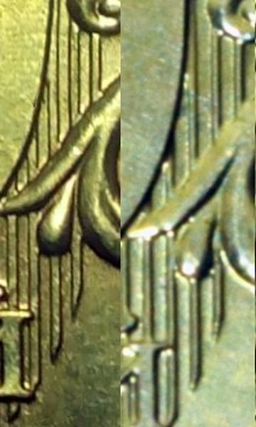 Лучше для сравнения использовать БЛЕСТЯЩУЮ монету. Часто на них всё видно более чётко.