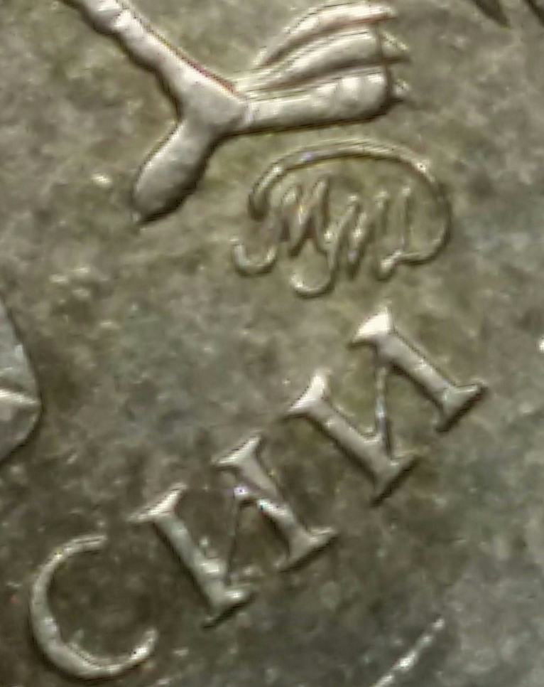 Какие бывают виды и варианты, расположения монограмм, у монет этого года ?