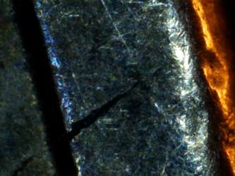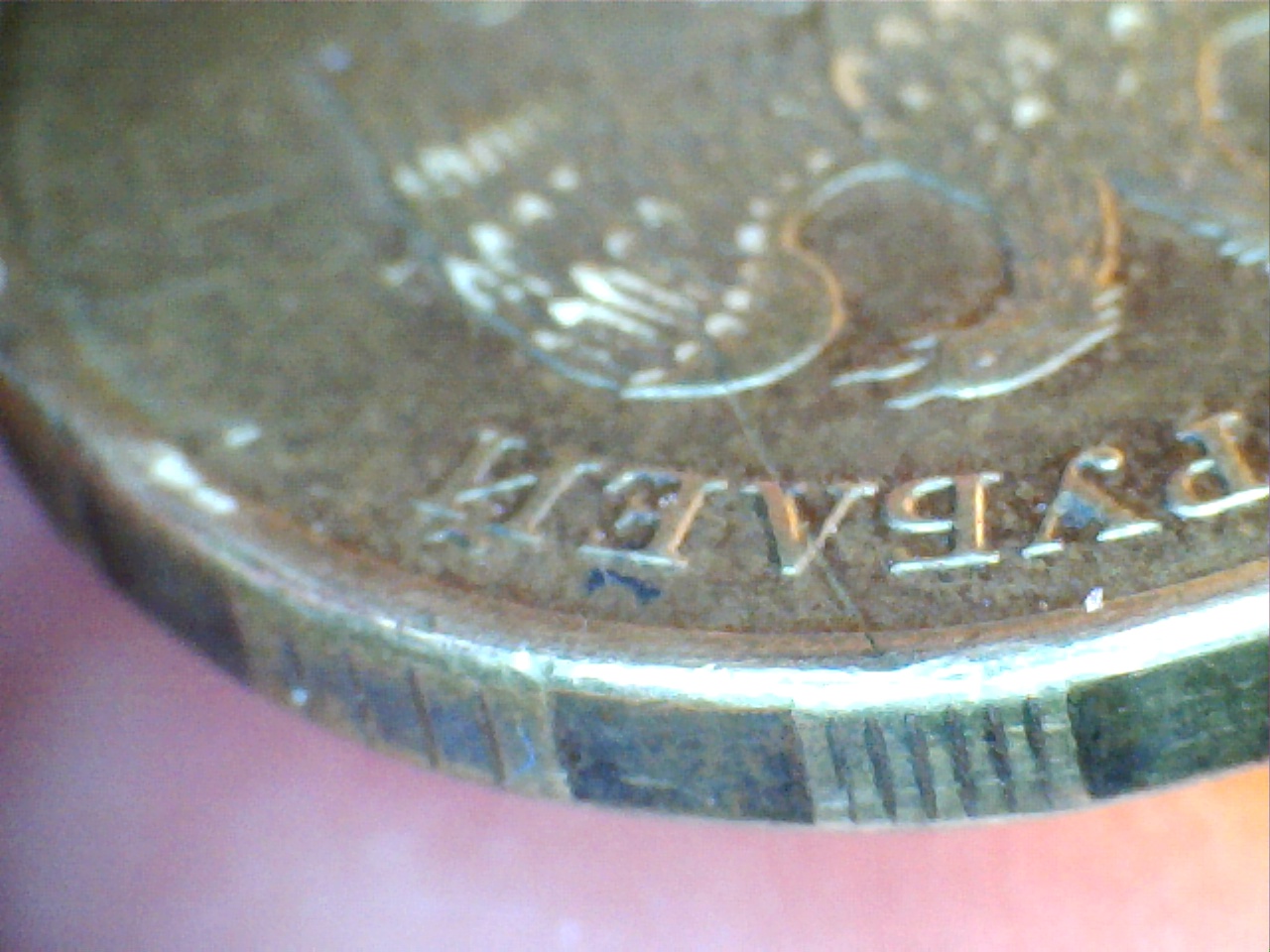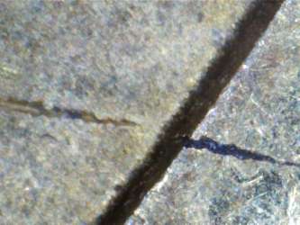 Раскол штемпеля полоса выпуклая. У Вас по видимому,царапина. ИМХО.