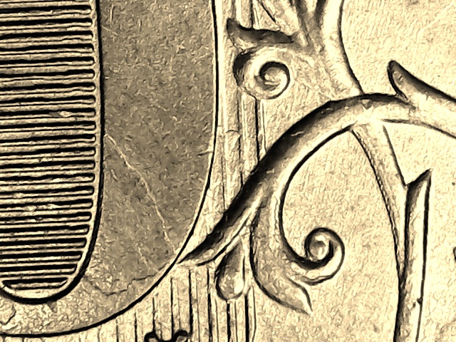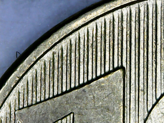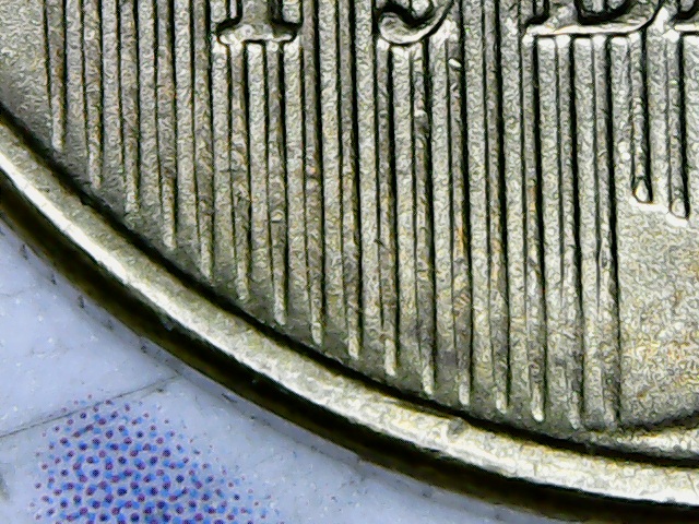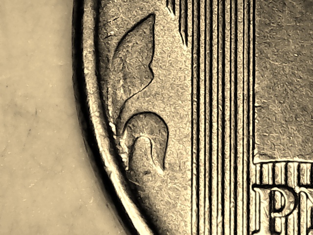 прошу помочь определить штемпель монеты.очень узкий кант. все описания под каждым фото.вертикальные линии вверху и внизу,не касаются канта.