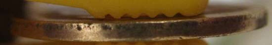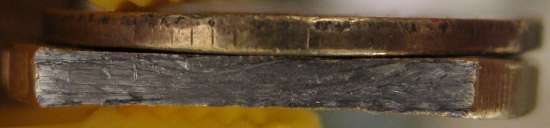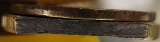 Хорошо. А толщина монеты? То есть до дефектов она была тонкая? с покрытие по трем плоскостям?