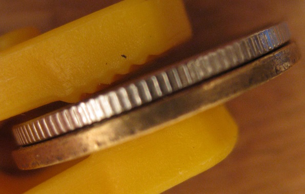 Подождите, монета тоньше почти в два раза, покрытие опять же..