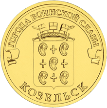 25 июля 2013 департамент внешних и общественных связей ЦБР объявил о выпуске в обращение с 1 августа очередной монеты серии "Города воинской славы" - Козельск. Монета стала 21-й в с начала выпуска серии в 2011 году, и 5-й в текущем году.