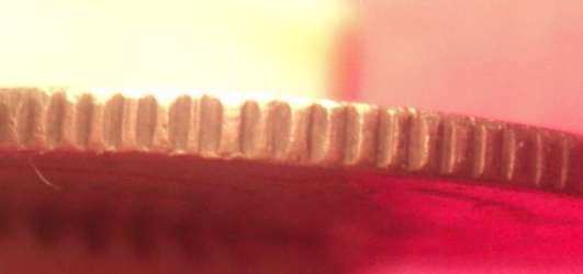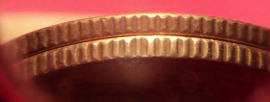 Что то, я не понял Вашей мысли. Если я возму заведомо правельный гурт и сравню с гуртом на фото, то он гурт явно отличается. И какие дефекты Вы увидели на представленном гурте. И еще обратите на низ монеты. Когда идет давление сверху прессом, то лишний металл идет вниз образуя кромку или проще говоря наплыв по всей монете. На третьем фото виден этот наплыв или кромка. Я это к тому, что это не рукоблуд или дефект.