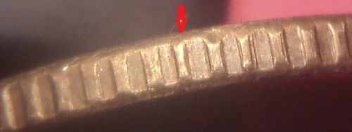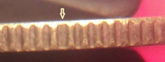 Даже если риф не проченился полностью. он все равно тоньше чем справо или слево. На вашей монете явный брак.