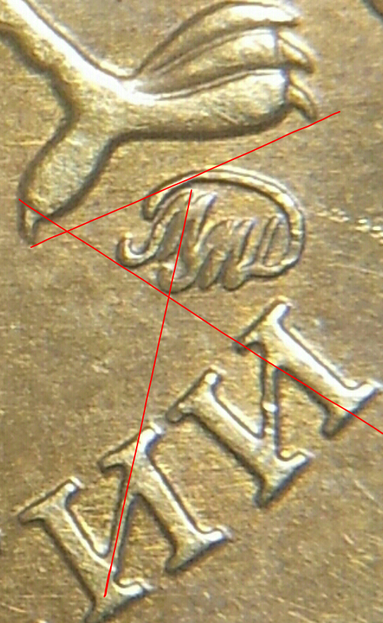 и зашёл в тупик. Знак сидит ниже положенного, сам выглядит крупнее обычных, поскольку его дужка буквы Д шире чем у других, а соединительная ножка М-прямая (т.е.без загиба). Произвёл замеры и получил такую разницу. Помогите разобраться. Или у меня глюки, или я разучился рисовать? Для этого специально подкинул фото без разлинейки. Может у кго лучше получится. С Ув.жду мнений.