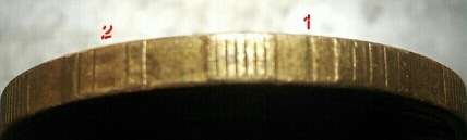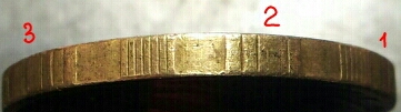 Доброго всем здоровья. Сопоставил с единственным похожим (нечастым) гуртом. Но при вращении 'моего' по часовой, вижу целых три дефекта. Укусите меня 'акулы гурта'( Валерий Кристина и др.), - это что, его обычный типаж?..
