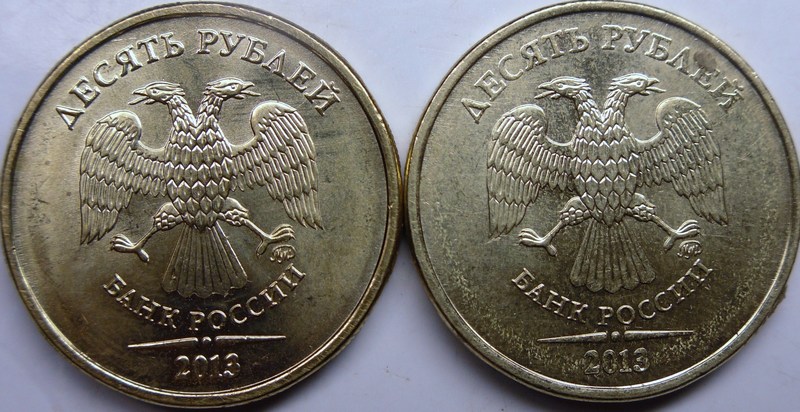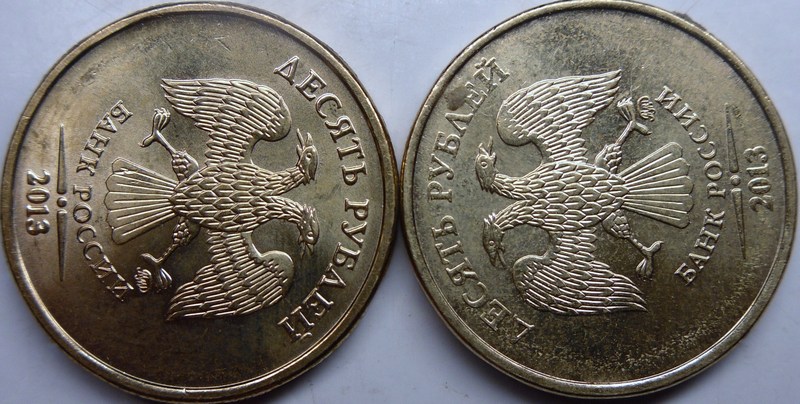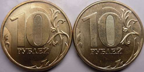 Мне показалось,что на левой монете надписи приближены к канту.