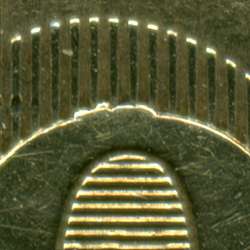 По всем признакам спецкаталога это рядовая монета шт.2.3.А, если бы не одно НО! Цифра "0" номинала в верхней части имеет заметный выступ, своею шириною соприкасающийся с 5-ю полосками фонового рисунка. Браком эту особенность не назовешь, видно, что это какой-то совершенно отдельный штамп, возможно со случайным дефектом.